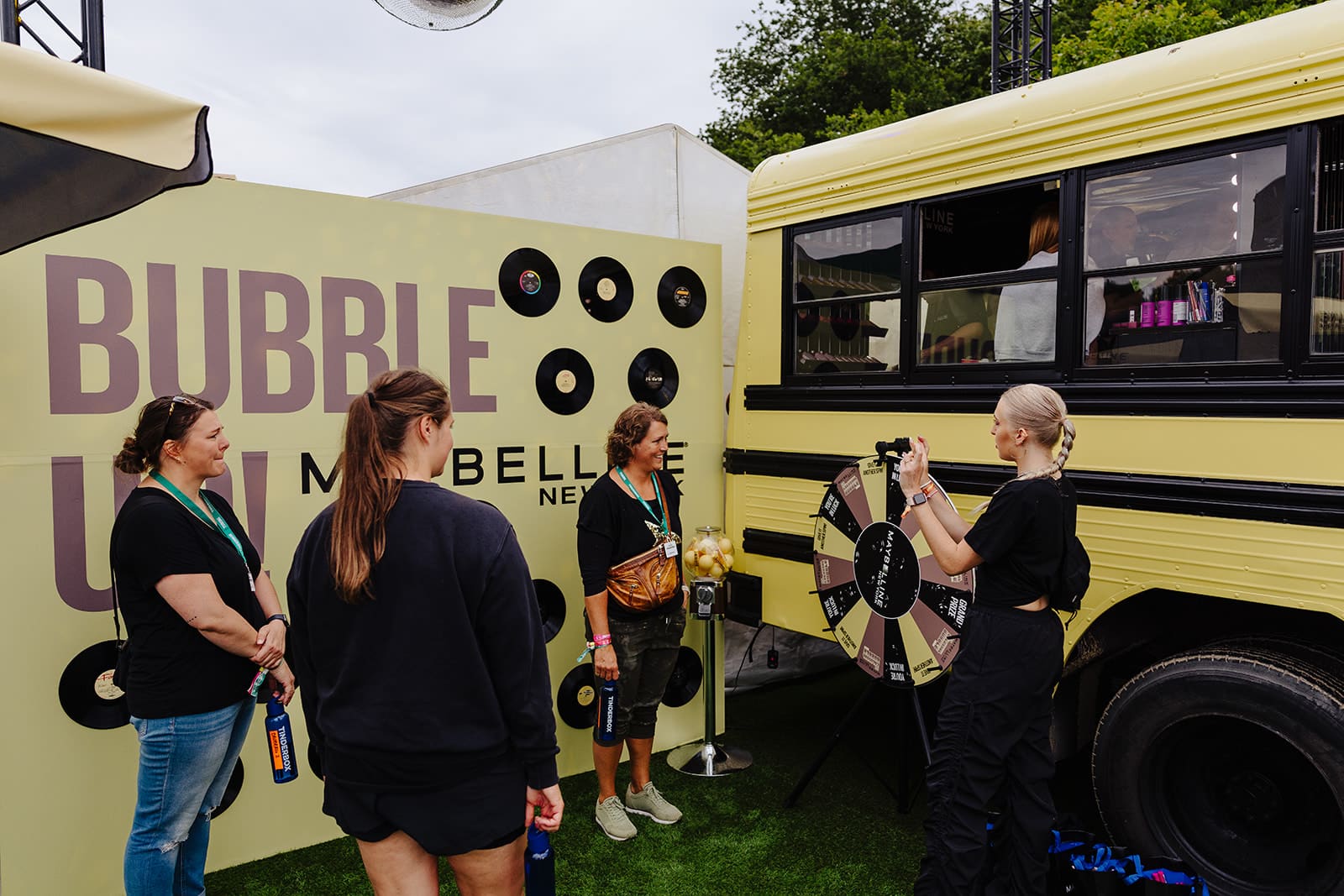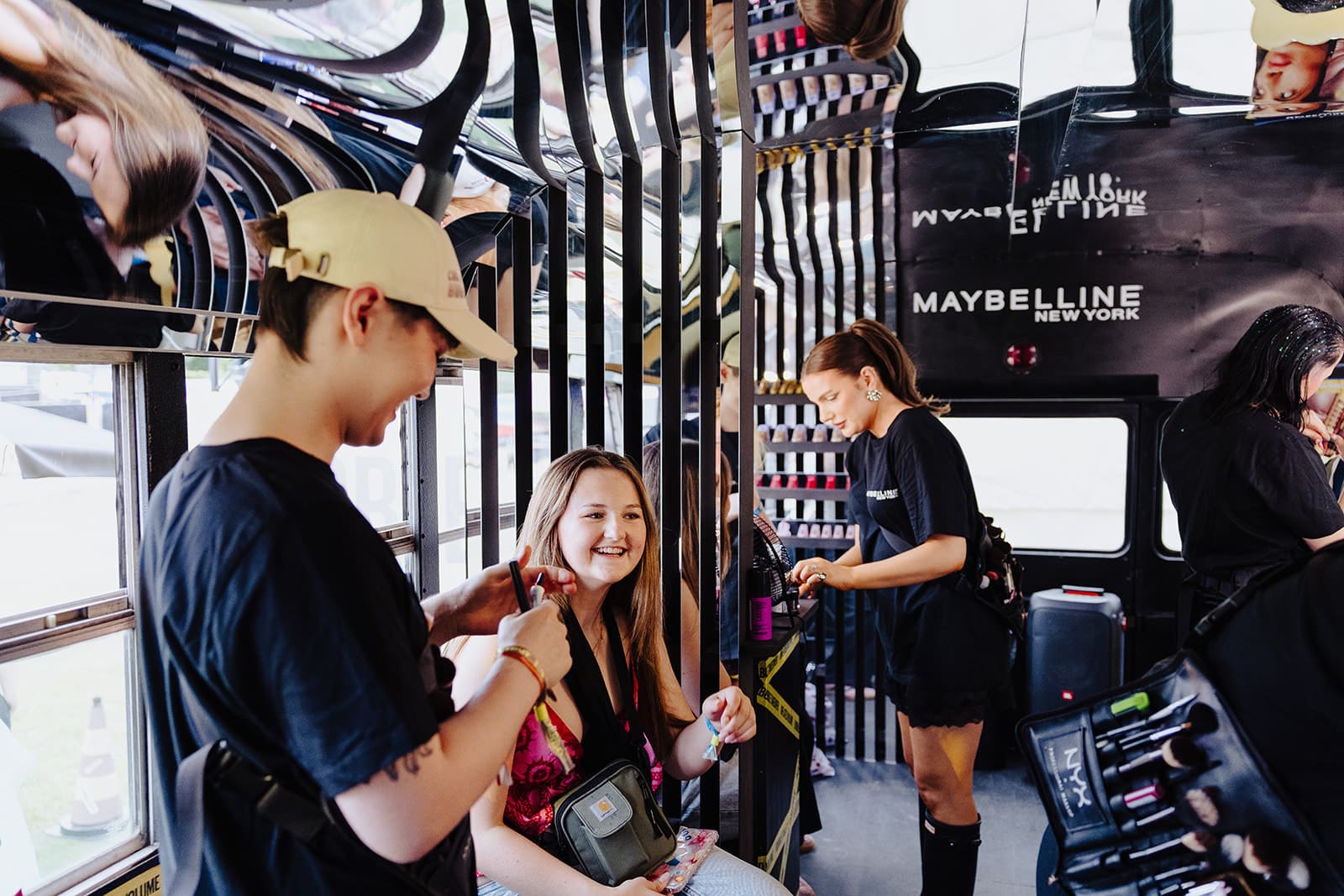 Professionelle makeup-artister giver dagligt hundredevis af gæster mulighed for at få lagt en glamourøs festival-makeup. Det sker i den transformerede old school New York’er bus, der nu danner rammer om et enestående makeup-studio.